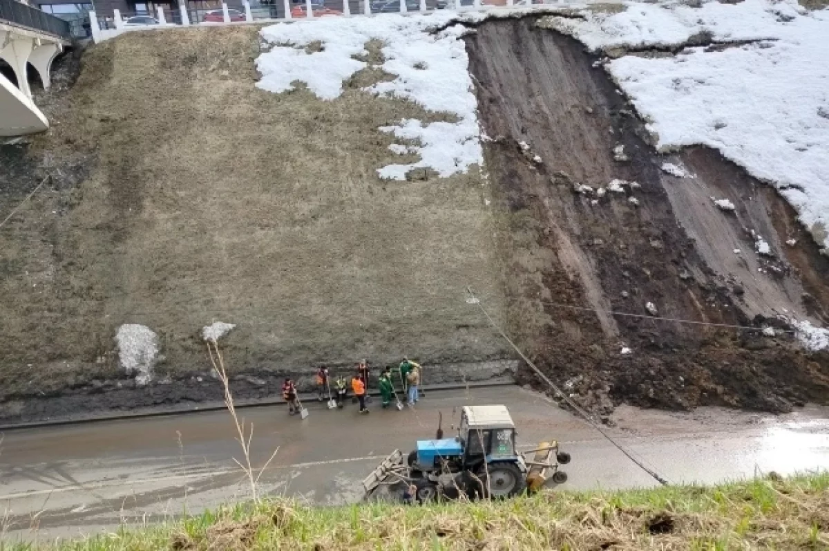 Работы по расчистке начались на Зеленском съезде в Нижнем Новгороде из-за оползня. Об этом сообщили в мэрии города.