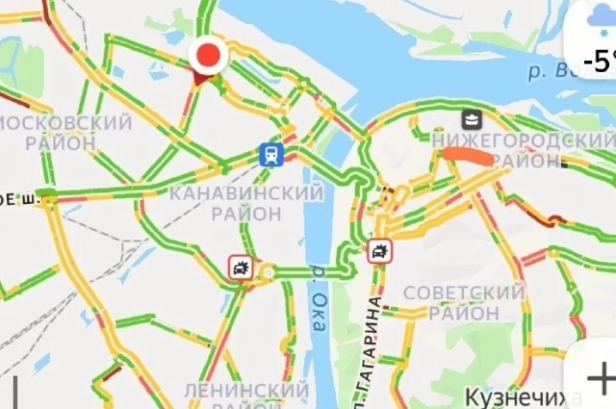 Ранее пробки в 8 баллов сковали Нижний Новгород.