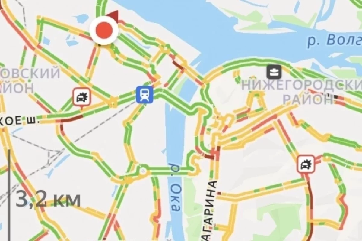 Движение затруднено в основном в Нагорной части Нижнего Новгорода. Заторы образовались на улицах Барминская, Тимирязева, Пушкина, Белинского, Ошарская, Акмолинская, Советская, а также улица Ивана Романова.