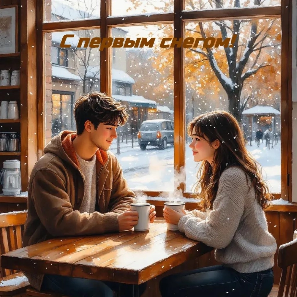 Первый снег — это нежное чудо природы. Желаю тебе теплых встреч в любую погоду, ярких впечатлений и много улыбок.