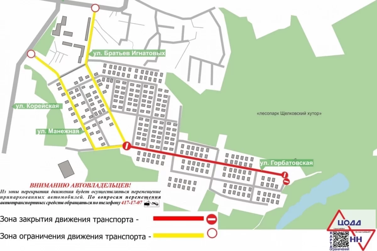 Согласно информации, проезд будет закрыт на трех участках: по улице Манежной (от улицы Корейской), по улице Братьев Игнатьевых (от улицы Медицинской), а также на всем протяжении улицы Горбатовской. Автомобилистам рекомендуют заранее планировать свой маршрут и использовать для объезда прилегающие улицы.