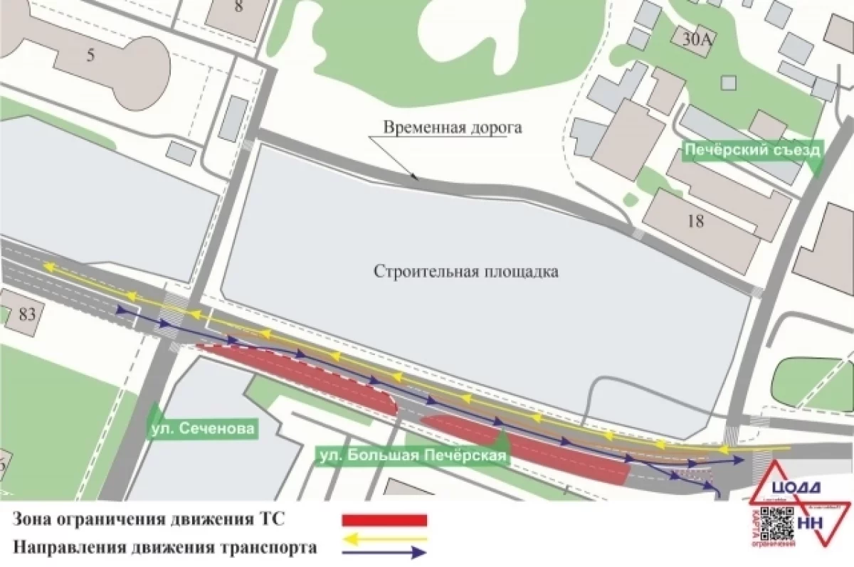 Ограничения вступят в силу на участке от ул. Сеченова до ул. Ковровской с 18 октября. Они связаны с переустройством инженерных сетей. Точный срок окончания работ не сообщают.