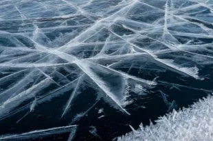 Эти хрупкие кристаллы льда обладают тонкой слоистой структурой с отчетливыми прожилками.